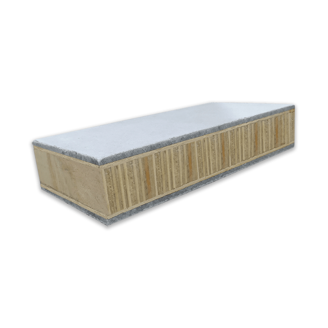 Placa composta por lâminas de madeira, ideal para arquitetura e fachadas visíveis.